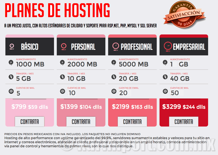 Los Paquetes de Hosting, más profesionales del Mercado Mexicano, ofreciendo calidad, velocidad y soporte incluido.